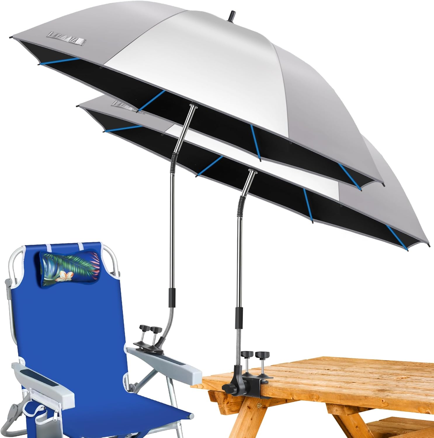 2PACK Umbrella for Beach Chair, 360°Adjustable 50+ UV Protection Large Camping Chair Umbrella with Universal Clip