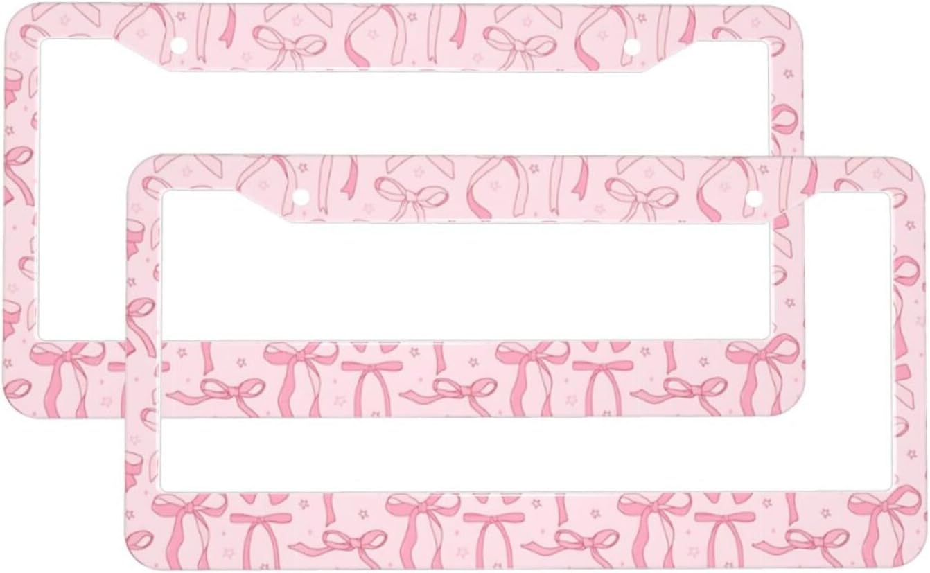 License Plate Frame 2 Pack Blue Bows and Hearts , Universal Aluminum License Plate Holder Car Accessories with Screws for Women 12.3x6.3 inch