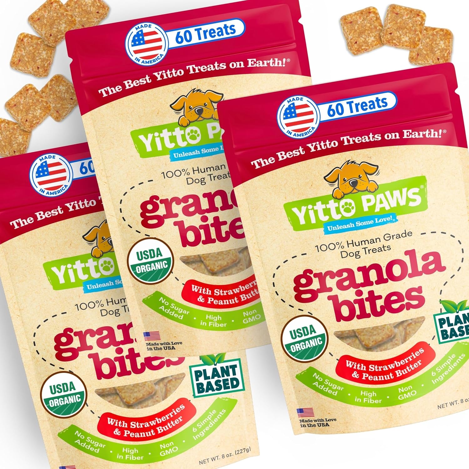 All natural, organic, human-grade ingredients, organic apples, organic oats, organic peanut butter, organic strawberries |