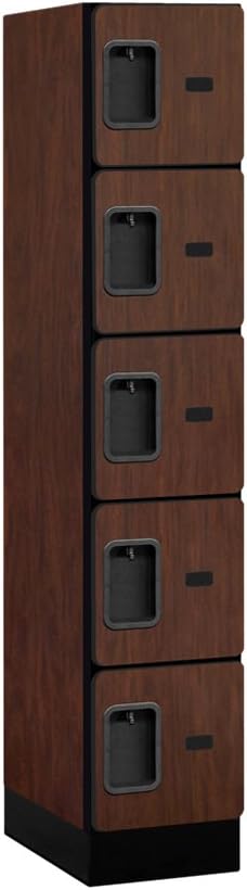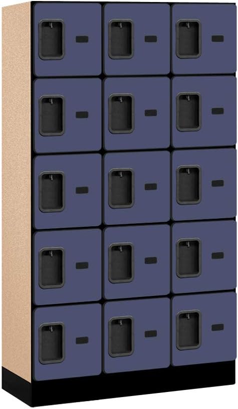 Salsbury 30000 Series Designer Wood Lockers are ideal for settings where a professional environment is desired. Designer lockers are 12 inch wide, are available in Single Tier, Double Tier, Triple Tier, Box and Double Tier 'S' Style configurations and in 6 high pressure laminate finishes (Gray, blue, black, maple, cherry or mahogany). Designer lockers are available in heights of five (5) feet and six (6) feet and include a 4 inch black base (add 4 inch for the base) and in depths of 15 inch, 18 inch or 21 inch. Optional matching laminated sloping hoods and side panels easily attach to designer lockers and provide a finished look to an individual locker or a row of lockers. All locker doors are 12 inch x 3/4 inch deep and include a black name / number plate. All locker doors also include heavy duty concealed hinges and a lift up handle an recessed hasp for added security. Built-in locks (#33310 for combination and #33315 for key), padlocks (#33320 for combination and #33325 for key), electronic locks (#33390) and resettable combination locks (#33395) are available upon request. One wide lockers are available as fully assembled units only. Three (3) wide lockers are also available as fully assembled units only and required minor assembly.